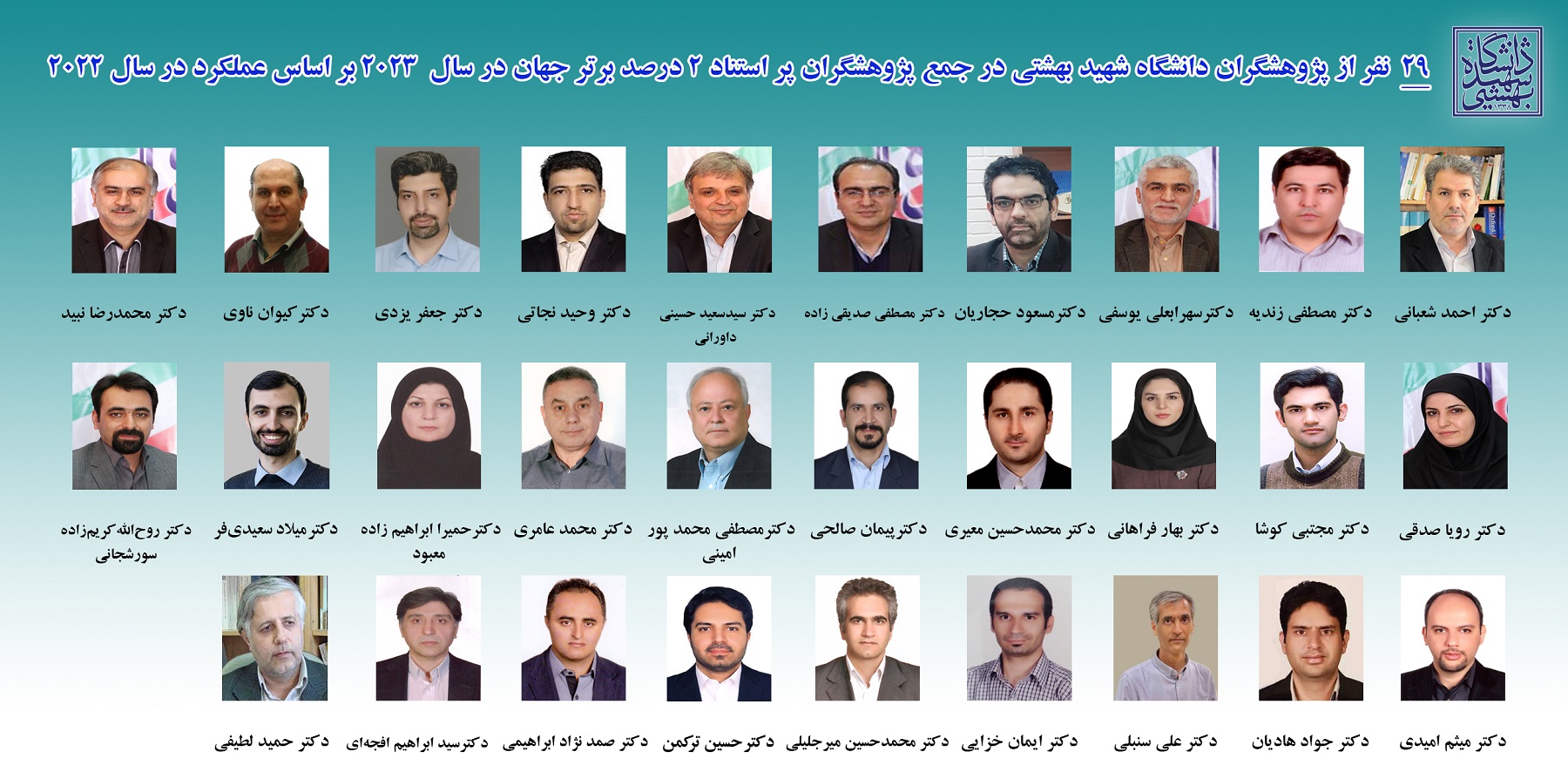 عضو هیأت علمی دانشگاه شهید بهشتی در فهرست ۲ درصد دانشمندان برتر جهان در سال 2023 و 10 عضو هیأت علمی در فهرست دانشمندان دو درصد برتر 2023 بر اساس کل دوره فعالیت معرفی شدند.
