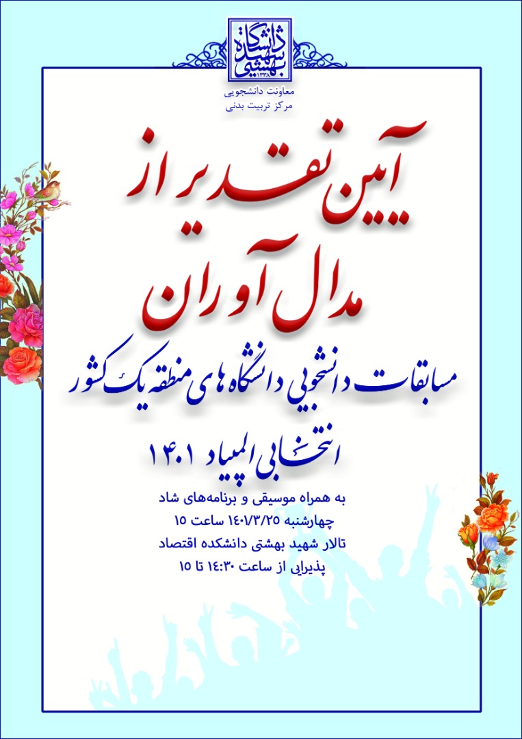 صفحه اصلی آیین تجلیل از قهرمانان و مدال آوران ورزشی دانشگاه شهید بهشتی 33649 بازدید print share تالار ابوریحان مرکز همایش های بین المللی دانشگاه شهید بهشتی در شب عید سعید غدیر خم با حضور ریاست...